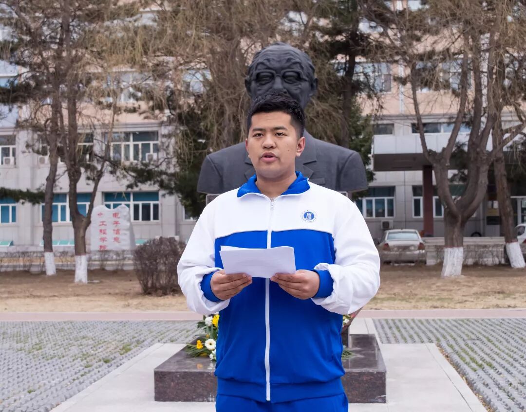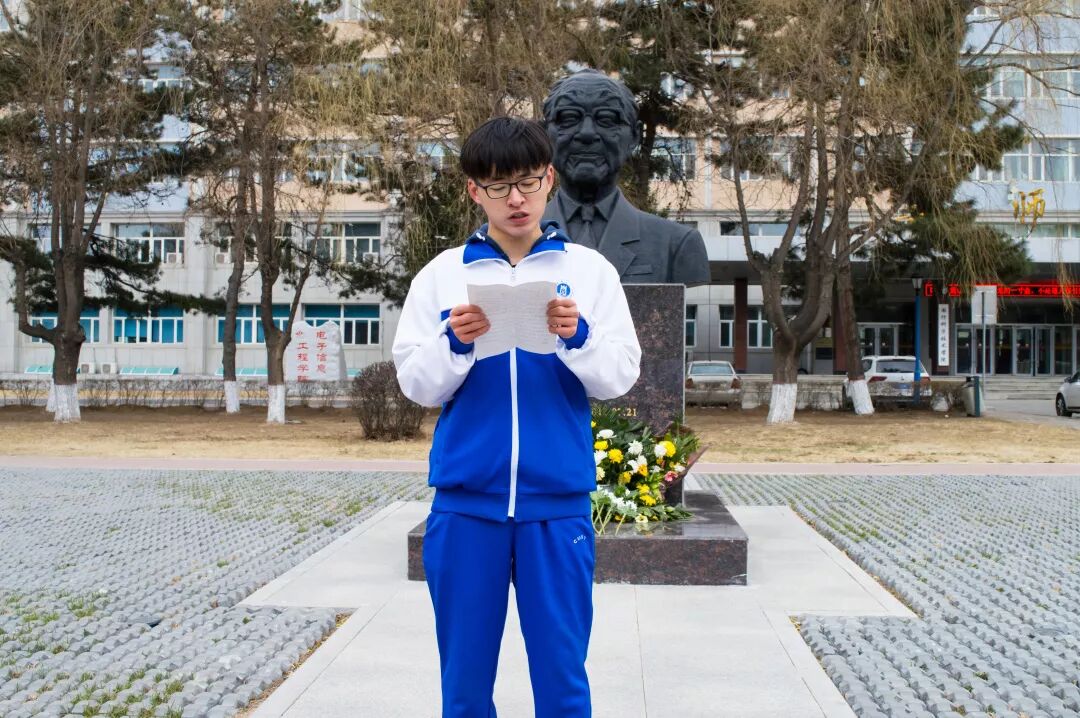 上午九时,师生们庄重肃穆,怀着对王大珩院士的无限追忆肃立在铜像前。在党员金温展的主持下,祭扫活动正式开始。